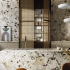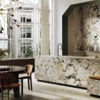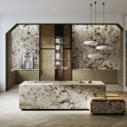 Its unique design highlights on a background of cream tones small crystals that reproduce in great detail the nature of the Brazilian stone. A seductive, luxuriant and savage design.