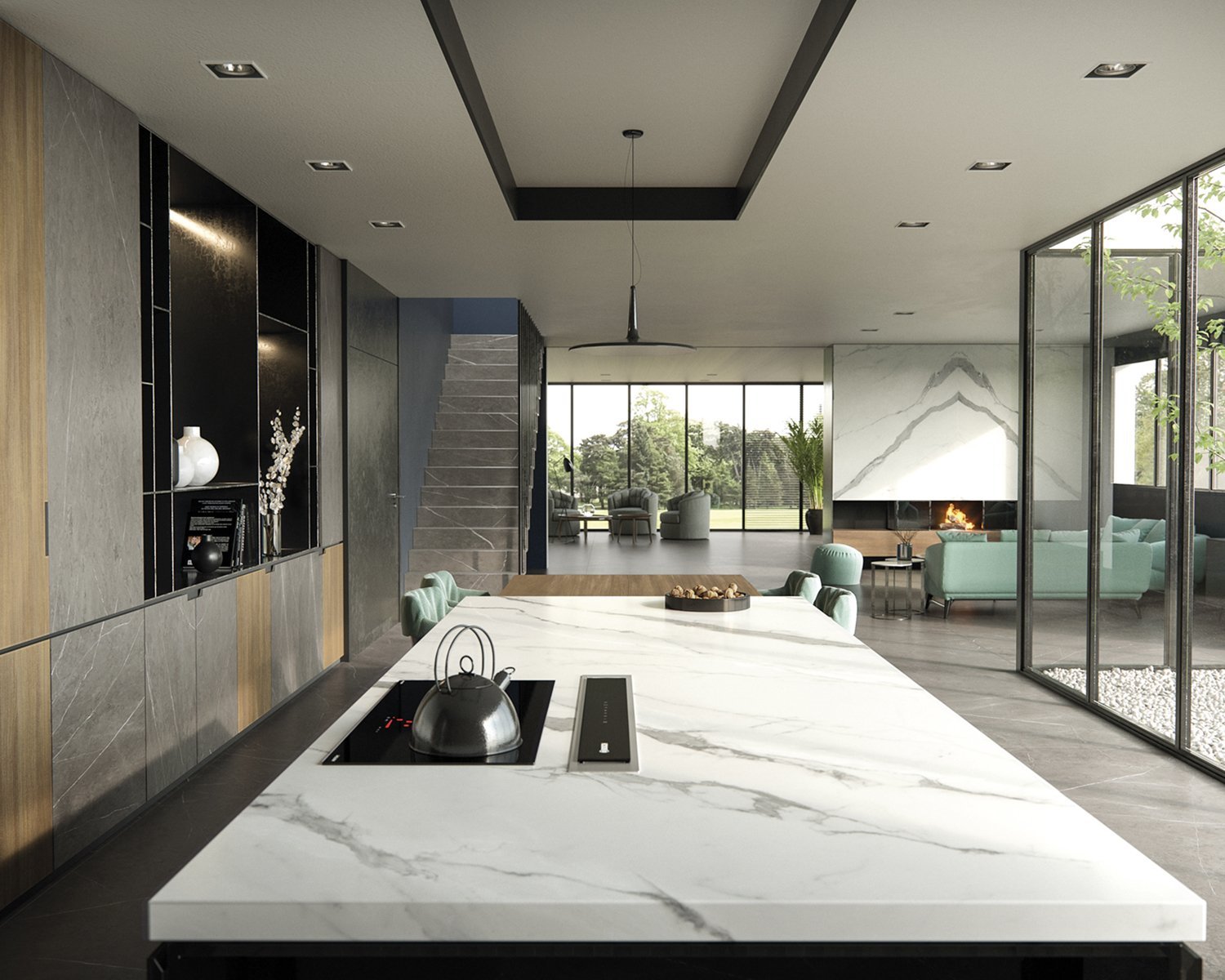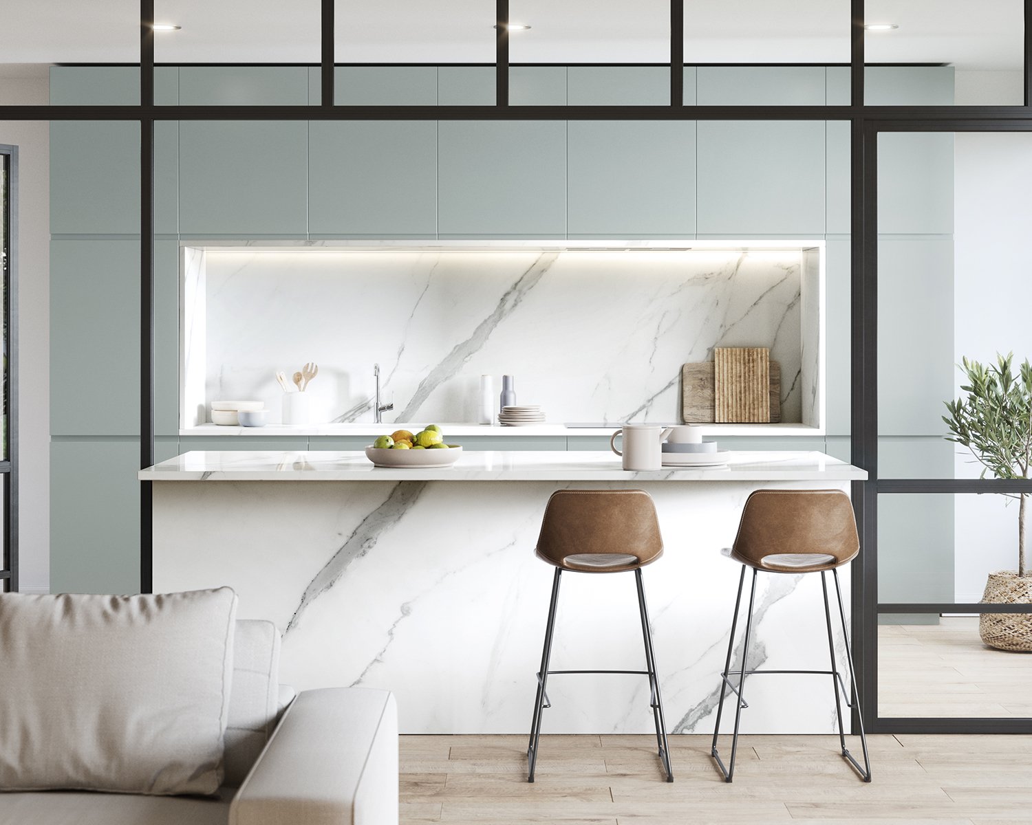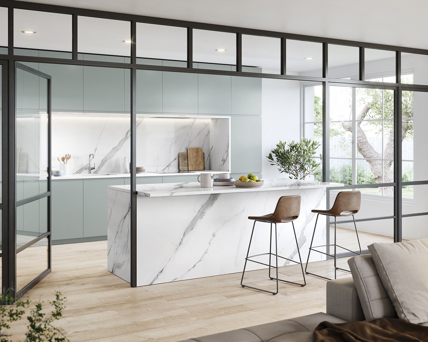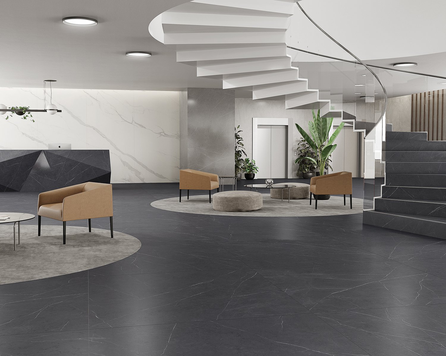 The beauty of the Statuario Venato marble is materialised in a luminous canvas that highlights the greyish shades of a dramatic veining. The suggestive character of Aria White brings together the tradition of classical marble in a perennial design. The most whimsical splendour.