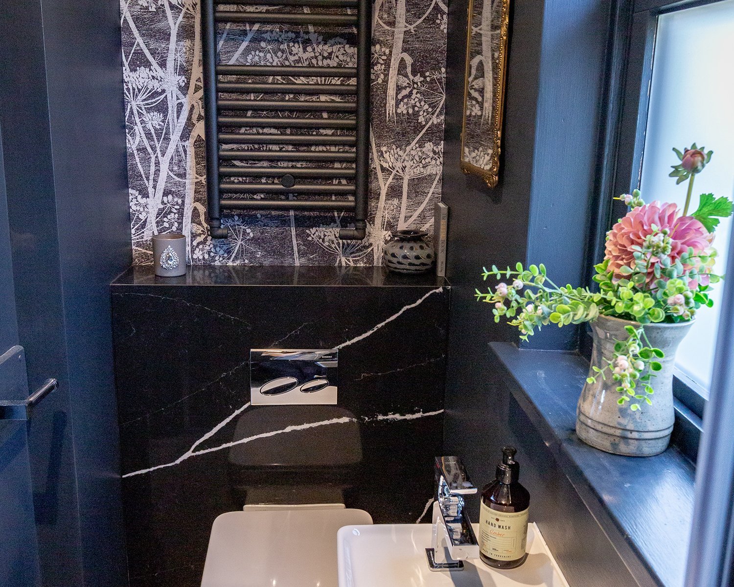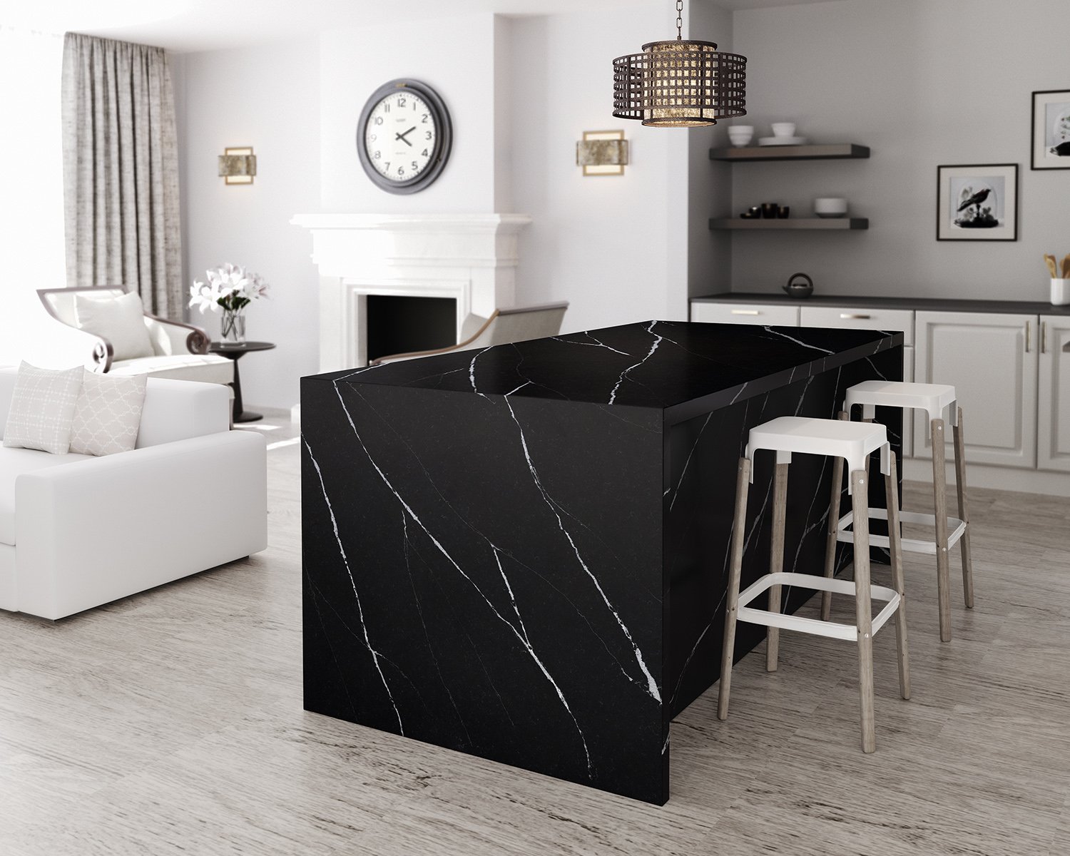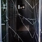 Evocative of the beautiful, Spanish Black Marquina marble, this creation presents an intense, black background with convincing, intense, white details and highlights which rise to the surface.