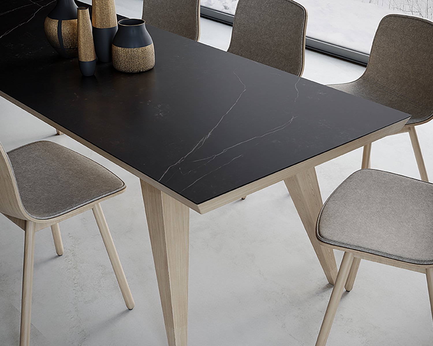 With a touch of particularity, this tone is inspired by dark marbles with light streaks for the most special environments.