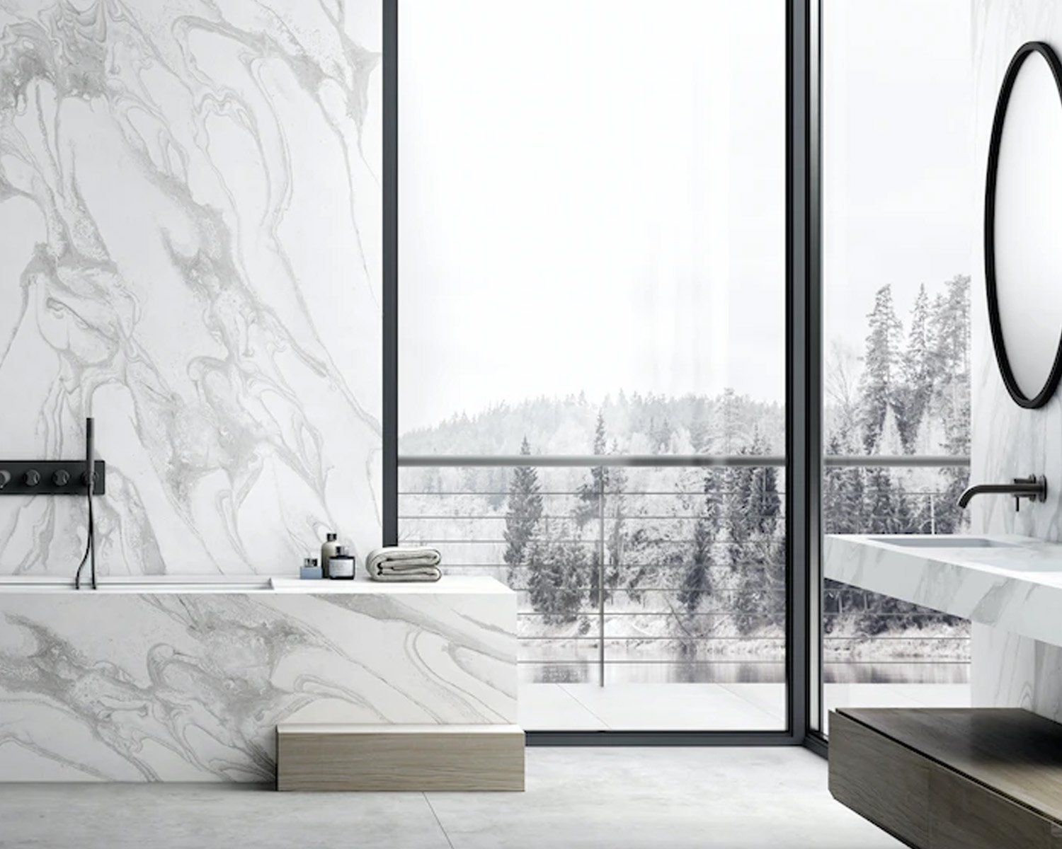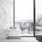 A swirling, marbled, cloud-like pattern which celebrates the scientific principles of fluid dynamics. Liquid Sky’s unique characteristics consist of a white base with flowing grey veins. The design explores the movement of gravity, the interplay of the elements, their matter, and pays homage to swirling energy and perpetual motion.