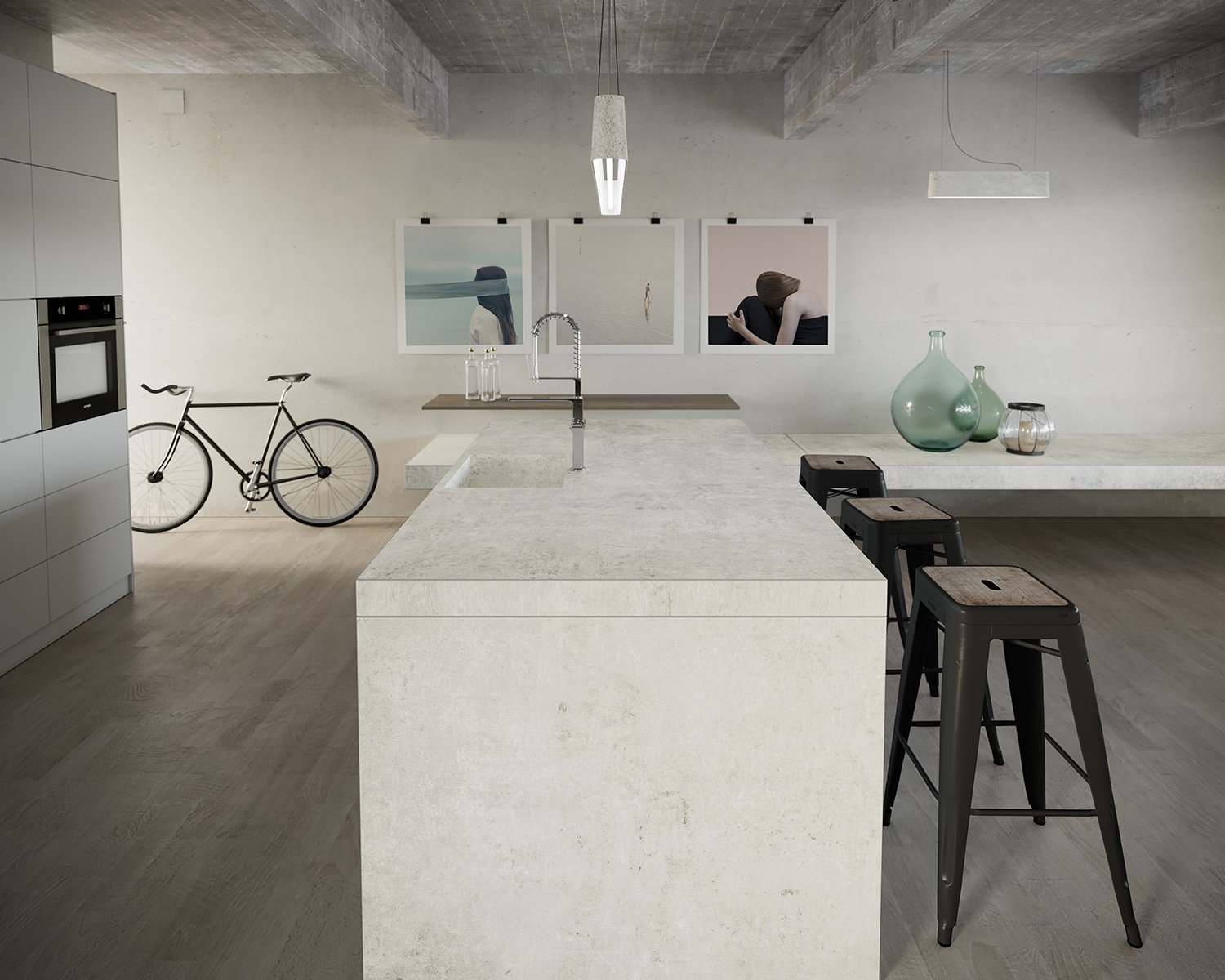 A reinterpretation of conventional cement inspired by industrial aesthetics. Its subtle structure over a White base tone make Luna a trendy color. The pattern and background merge perfectly.