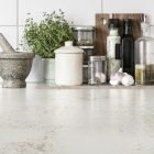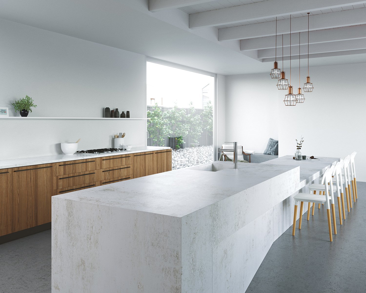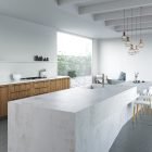 Dekton Nilium is the minimalist element of the Industrial series. Inspired by a silver metal, Dekton Nilium offers a subtle cocktail of white and grey shades. The delicate appearance of warm colours represents the beginning o the oxidation process of a material.