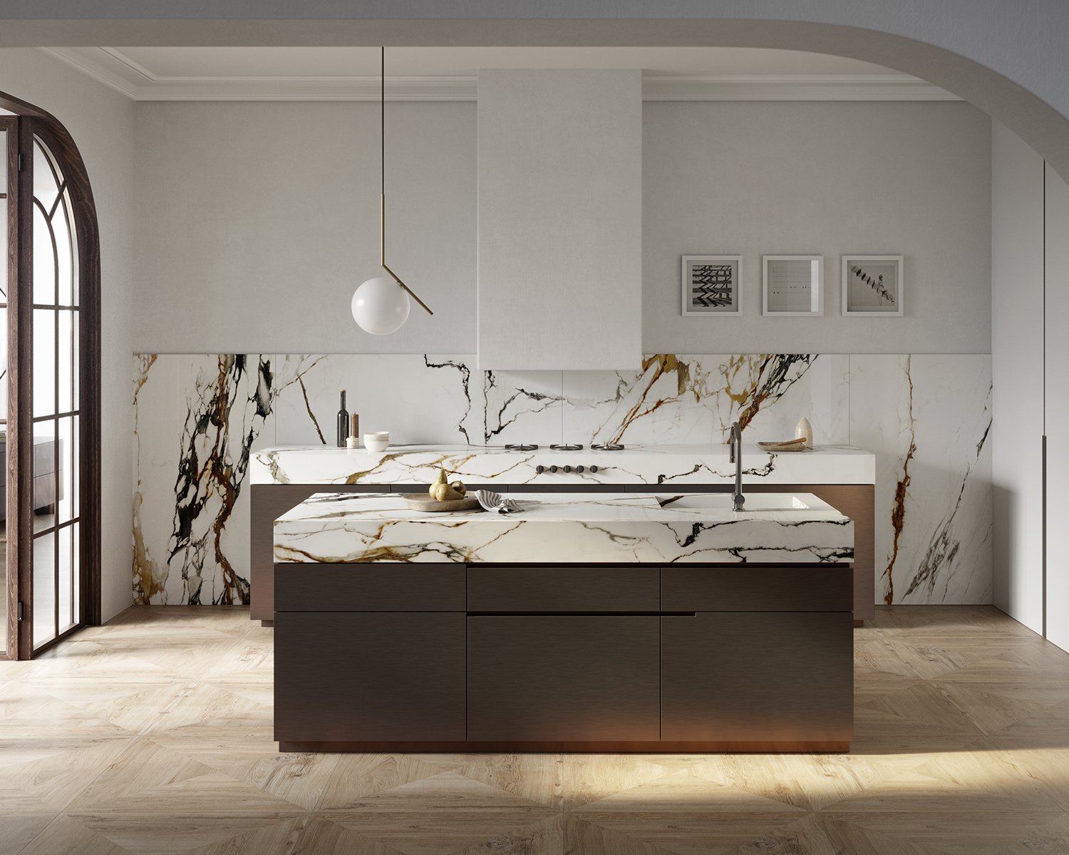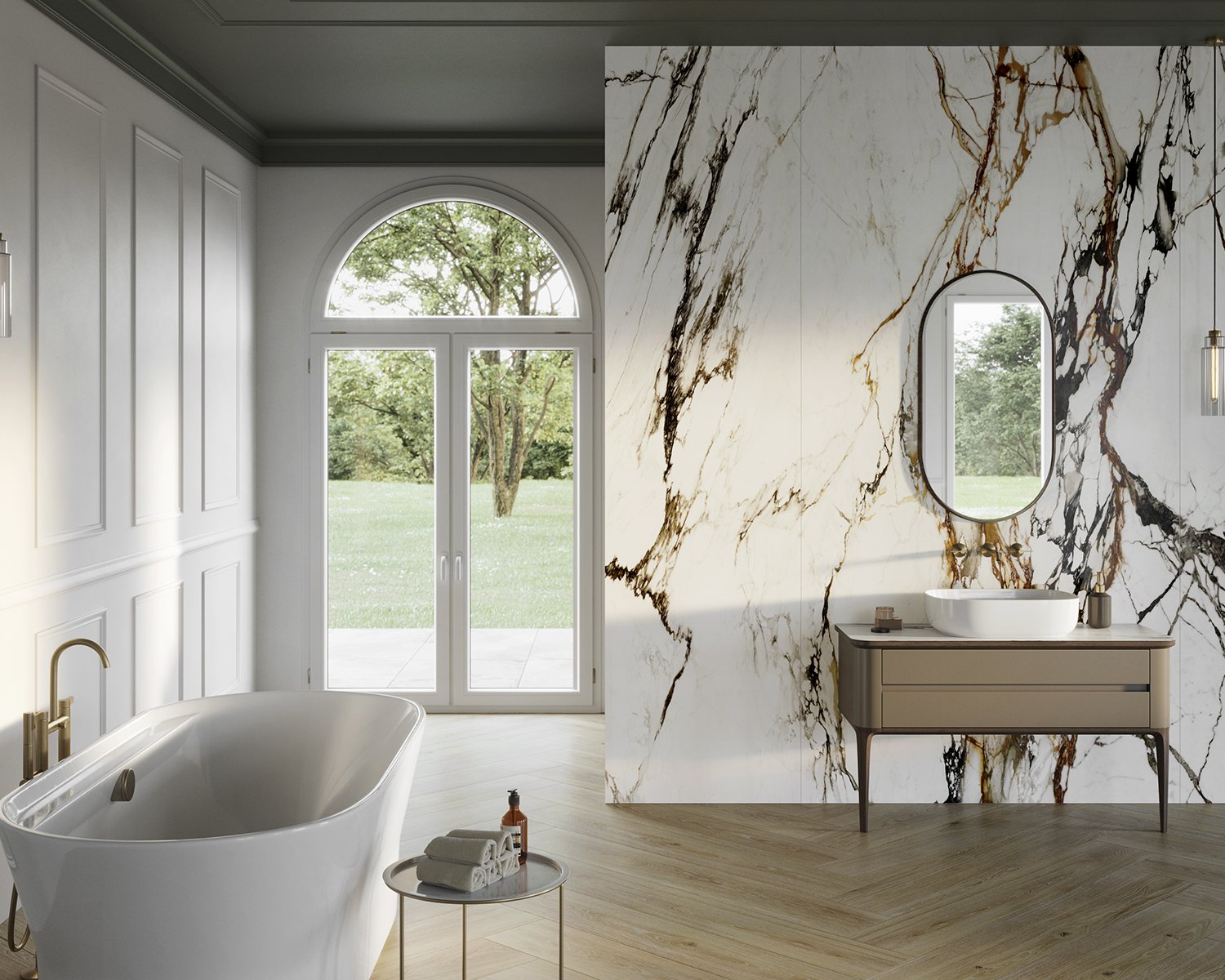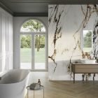 Considered one of the most extraordinary natural stone designs, Paonazzo combines an elegant ivory appearance and a delicate combination of caramel, sage and merlot veins, interspersed with a flash of golden flecks. A true timeless classic with high decorative value.