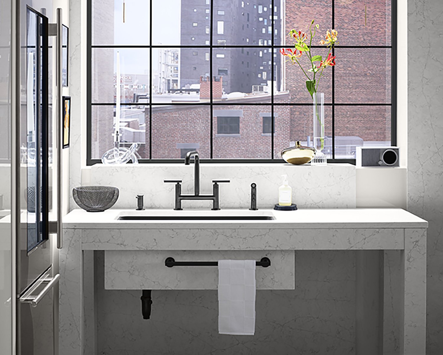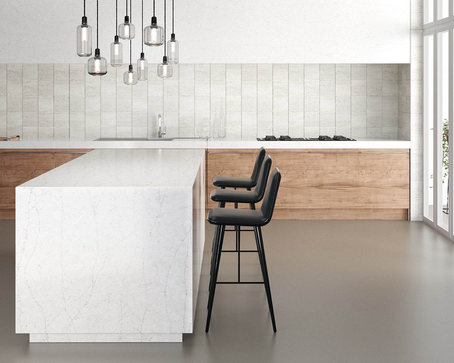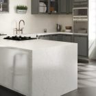 With a look of white limestone and covered with subtle grey veins, it creates an impressive cracking effect. This model matches perfectly classic and rural kitchen and those that aim to recreate a faint sense of tradition.