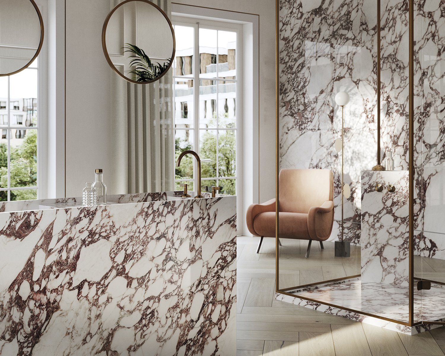 Inspired by the luxurious Calacatta marble, the Viola collection has a delicate design characterised by its highly graphic richness. Elegant cream-white clasts emerge from a balanced canvas through two elegant shades: Blue and Rossé. An irresistible attraction to interior designers.